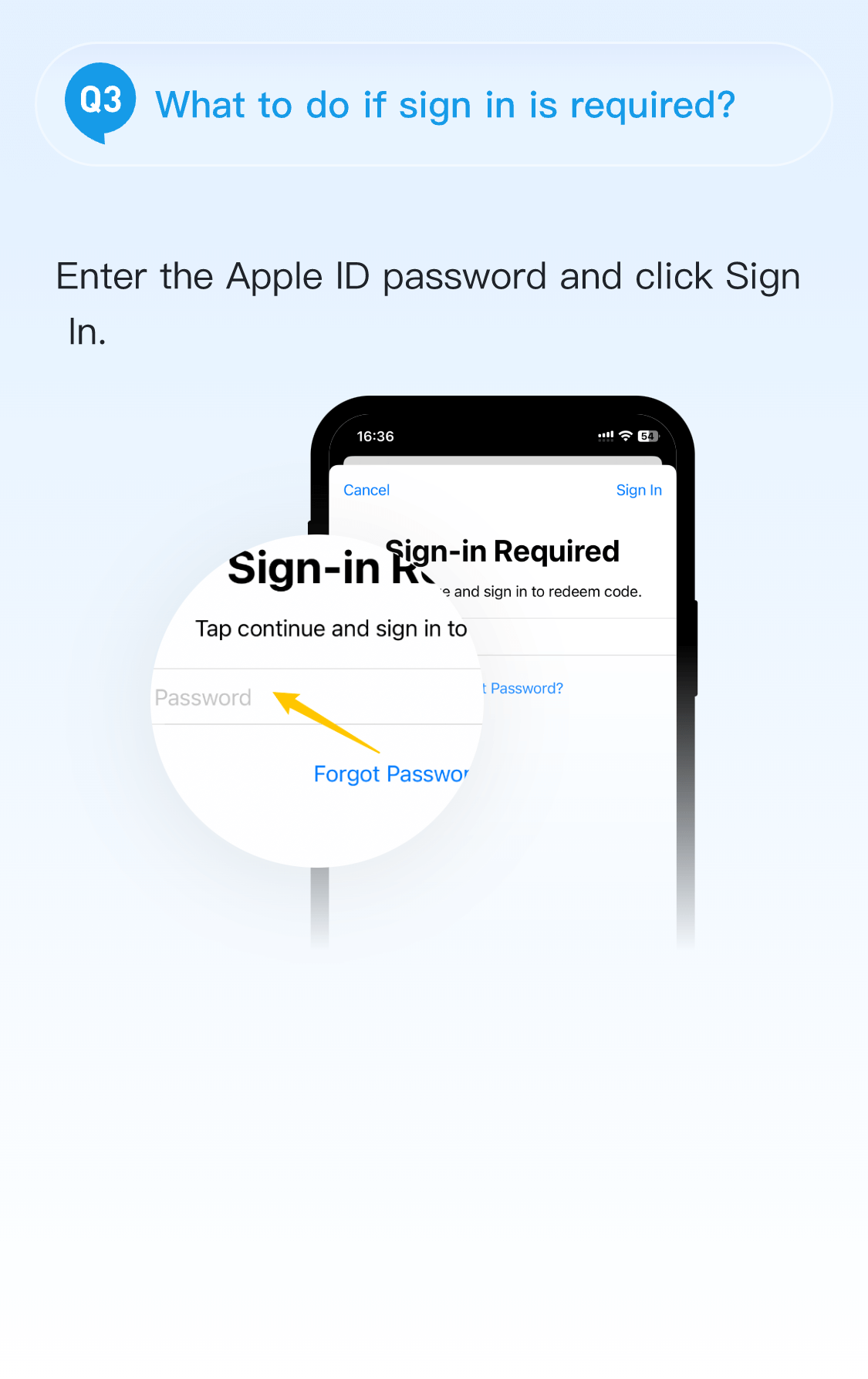 A: Put in a password that is in accordance with your AppleID.